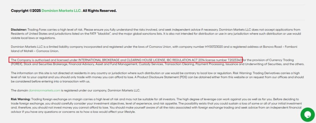 While Dominion Markets claims to be regulated by the Financial Services Commission (FSC) of Mauritius and holds a Retail Forex License (GB24203525), it is also registered with SVG FSA, which does not regulate forex trading. This raises concerns about investor protection.