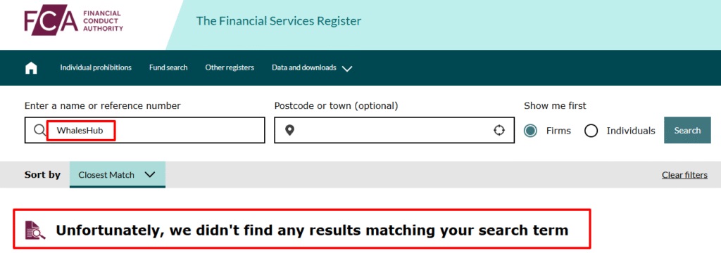 While WhalesHub says it operates out of the U.K., we checked with the Financial Conduct Authority (FCA) to determine whether WhalesHub was registered and authorized to offer financial services, and the answer we received raised issues concerning its legitimacy.